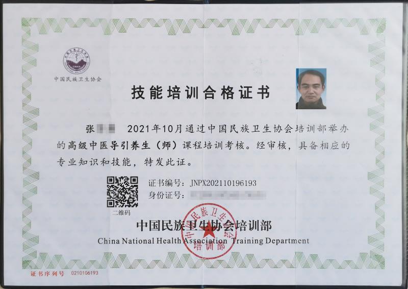 可颁发中国民族卫生协会“高级中医导引养生师”证书。