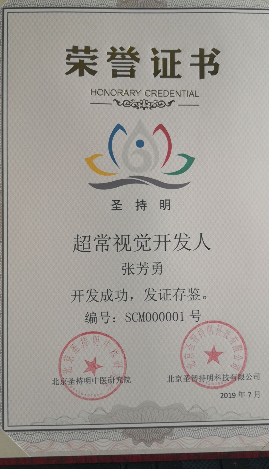 对超常视觉开发成功者颁发超常视觉开发荣誉证书。